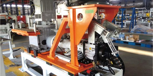 ● 革新輪胎胎面生產(chǎn)工藝,代替龐大的生產(chǎn)線 ● 提高輪胎的動平衡性和均勻性 ● 裝備齒輪泵的高產(chǎn)量擠出機 ● 特殊的螺桿設計,取消旁壓輯,實現(xiàn)連續(xù)喂膠無斷膠 ● 特殊的機頭設計 ● PID控制:根據(jù)下游設備自動調(diào)整擠出機轉(zhuǎn)速 | ● 多種鎖門形式: 側(cè)鎖式三爪鎖門和側(cè)鎖式框架鎖門 ● 高性能多通道溫控,控溫精準, 溫度遠程智能調(diào)節(jié),自動排氣 ● 自動潤滑系統(tǒng),定時定量定點潤滑 ● 全自動液壓系統(tǒng),安全可靠 ● 模塊化安裝 |