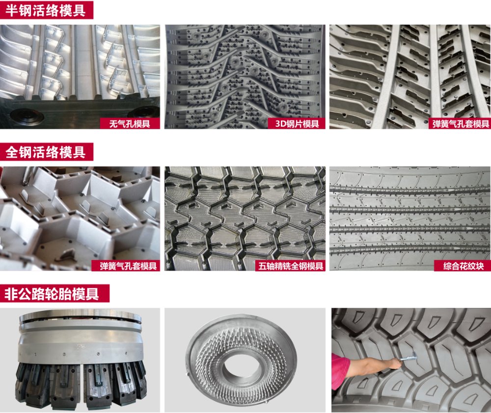 ● 采用先進的加工工藝,保證控制模具的間隙,極好的減少膠邊的產(chǎn)生,保證輪胎外觀與動平衡的要求。