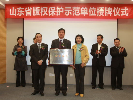 4月22日,山東省版權(quán)保護(hù)示范單位授牌儀式在公司研發(fā)中心隆重舉行。山東省版權(quán)局副局長(zhǎng)郭愛(ài)玲,青島市政府市長(zhǎng)助理武鐵軍,市文化市場(chǎng)行政執(zhí)法局黨組書(shū)記、局長(zhǎng)徐增敏,以及公司有關(guān)領(lǐng)導(dǎo)參加了儀式。