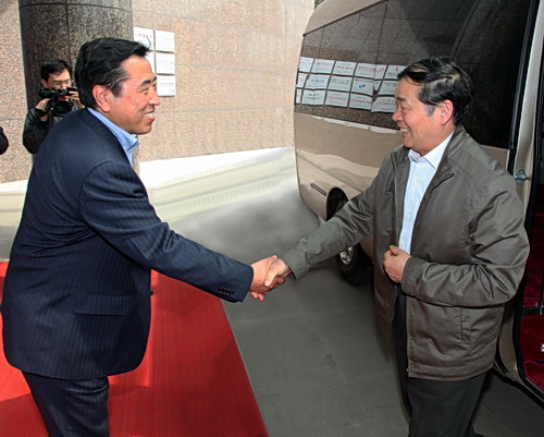 4月28日,國(guó)家工業(yè)和信息化部黨組成員、副部長(zhǎng)楊學(xué)山一行在青島市委常委、副市長(zhǎng)???,四方區(qū)委書(shū)記紀(jì)敏,四方區(qū)區(qū)長(zhǎng)張杰等相關(guān)領(lǐng)導(dǎo)的陪同下,到國(guó)家輪胎工藝與控制工程技術(shù)研究中心(簡(jiǎn)稱(chēng)“中心”)參觀(guān)考察。中心主任、公司董事長(zhǎng)袁仲雪,中心副主任、副董事長(zhǎng)張焱等領(lǐng)導(dǎo)熱情接待了楊學(xué)山一行。