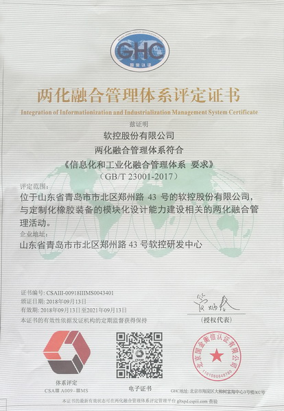 自2017年11月啟動(dòng)軟控兩化融合管理體系貫標(biāo)項(xiàng)目以來(lái),公司嚴(yán)格按照《信息化和工業(yè)化融合管理體系要求》(GBT 23001-2017)及《信息化和工業(yè)化融合管理體系實(shí)施指南》(GB/T 23002-2017)要求,相繼編制完成了兩化融合管理手冊(cè)、體系文件和兩化融合中長(zhǎng)期規(guī)劃等,成功實(shí)施了本次評(píng)審的“定制化橡膠裝備的模塊化設(shè)計(jì)能力”項(xiàng)目,建立了符合要求的兩化融合管理體系。