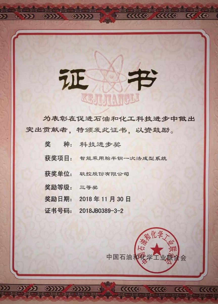 12月3日,由中國石油和化學(xué)工業(yè)聯(lián)合會主辦的全國石油和化工科技創(chuàng)新大會在北京隆重召開。大會隆重表彰了2018年度全國石油和化工科技進(jìn)步獎項(xiàng)目,軟控股份有限公司“智能乘用胎半鋼一次法成型系統(tǒng)”榮獲中國石油和化學(xué)工業(yè)聯(lián)合會科技進(jìn)步三等獎。