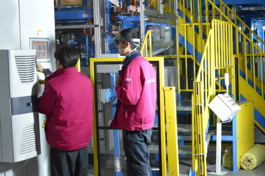 在具體操作過程中,軟控工程師由一人佩戴MR眼鏡,身處大洋彼岸的客戶通過網(wǎng)絡(luò)連接就可以在電腦上看到廠內(nèi)小料設(shè)備的實時全景,全面了解設(shè)備的整體情況及相關(guān)細節(jié)。負責此次驗貨的工程師介紹到:通過視頻對話,客戶與工程師進行實時溝通交流,了解設(shè)備的整體狀況、進行功性能展示等,客戶通過語音和編輯畫面對設(shè)備細節(jié)及關(guān)鍵點提出疑問,我方工程師團隊予以演示并給予專業(yè)解答。MR的高清晰、全方位的視頻畫面實時傳輸,使客戶技術(shù)人員如同身臨其境,達到實地勘驗的效果。