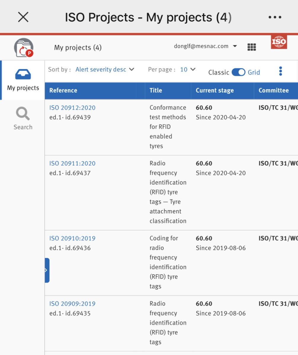 輪胎用RFID電子標簽四項國際標準于2015年10月正式立項,由國際標準化組織ISO/TC31(輪胎、輪輞和氣門嘴國際標準化技術委員會)下設的WG10“RFID tyre tags”工作組負責制定;工作組由來自中國、法國、意大利、美國、英國、德國、日本、韓國、芬蘭、加拿大、比利時、泰國、荷蘭、奧地利、阿拉伯聯(lián)合酋長國等國家相關企業(yè)單位的60余名專家組成。2015年10月至今,WG10工作組先后在布魯塞爾、三亞、馬賽、西雅圖、羅馬、東京、格林維爾、青島等地方召開8次全球工作會議,若干次工作組網(wǎng)絡會議,討論標準內容,解決各方分歧,四項國際標準分別并先后在全球范圍內完成CD(委員會階段)投票,DIS(國際標準草案)投票,F(xiàn)DIS(最終國際標準草案)投票,最終形成統(tǒng)一意見。繼2019年8月份,ISO 20909:2019 Radio frequency identification (RFID) tyre tags,ISO 20910:2019 Coding for radio frequency identification (RFID) tyre tags兩項國際標準發(fā)布后,ISO 20911:2020 Radio frequency identification (RFID) tyre tags-Tyre attachment classification, ISO 20912:2020 Conformance test methods for RFID enabled tyres兩項標準于2020年4月20日發(fā)布。目前,ISO/TC31/WG10工作組承擔的輪胎用RFID電子標簽四項國際標準已經(jīng)全部發(fā)布。
